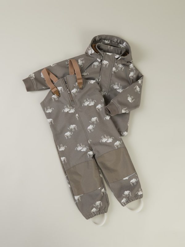 Waterproofness 8,000mm, Breathability 3,000g/m2/24h, Durability 20,000 Martindale, Windproof, Membrane between the lining and shell fabric provides waterproof and windproof protection Pattern All-over print Print Type Print repeated across the entire surface of the product Fabric Description Softshell is a waterproof, breathable, and windproof fabric perfect for outdoor play on cloudy, windy, and rainy days Wash…