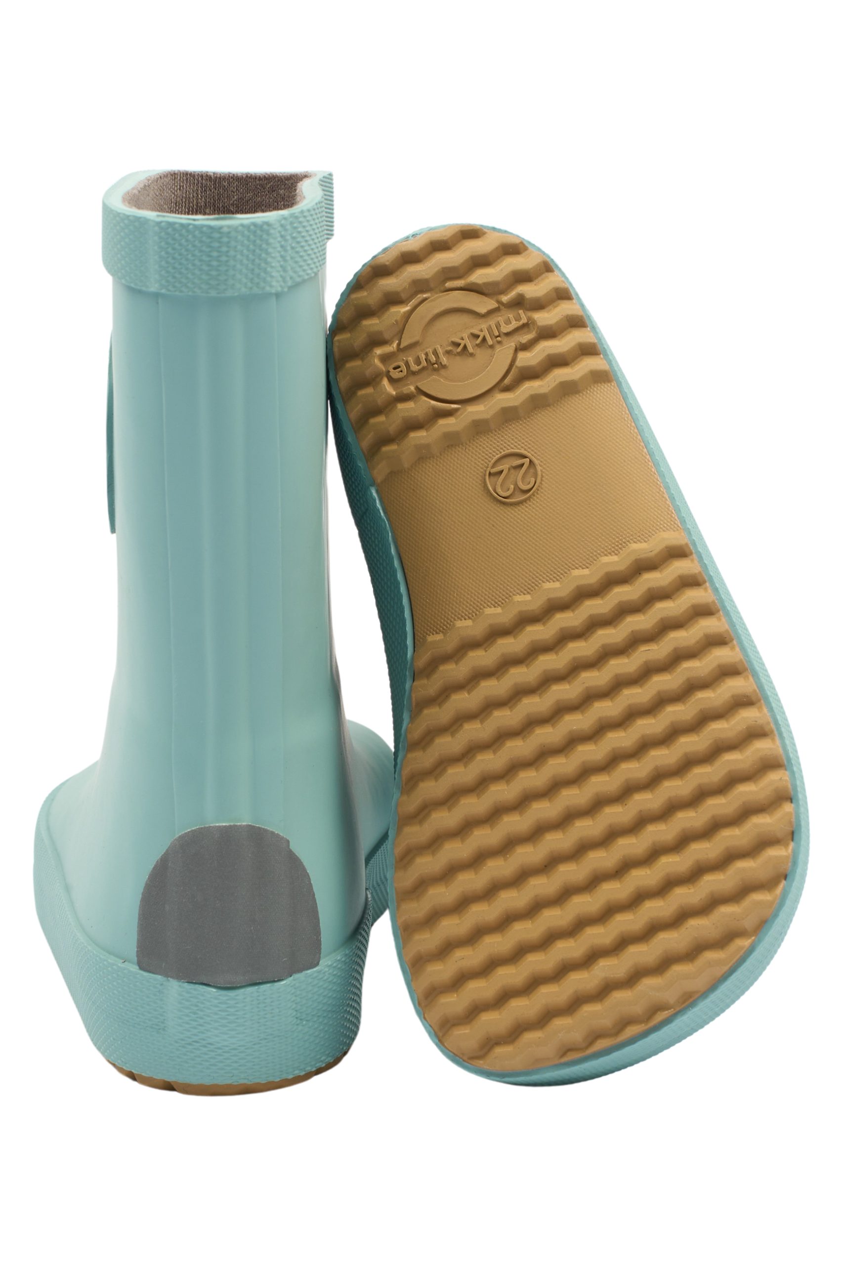 Solid-coloured Barefoot mikk-line wellies made with natural rubber and therefore phthalates free. The wellies are waterproof and practical for children who love to jump in water puddles, play in the wet grass/sand, or perhaps explore wildlife at a small stream. Their reflective details improve the child’s visibility in the dark, and the anti-slip outer sole allows the child to walk safely on slippery surfaces.